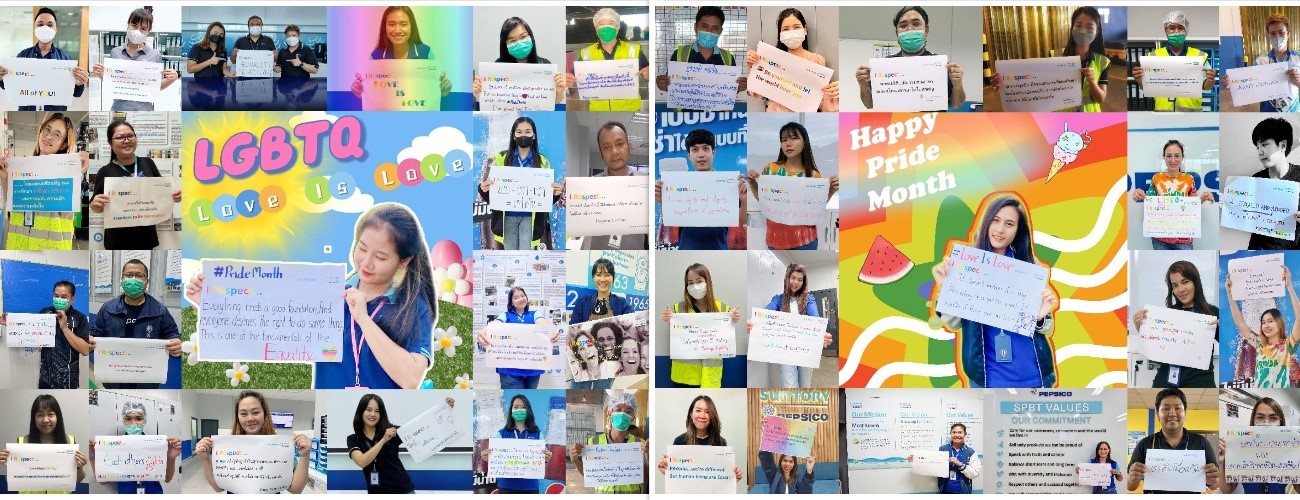 Suntory Pepsico Beverage Thailand (SPBT) invited colleagues to share pictures with their response prompt expressing their respect for the LGBTQ+ community. SPBT also conducted an online quiz to spread awareness around Suntory's DE&I, LGBTQ+ and gender policies.