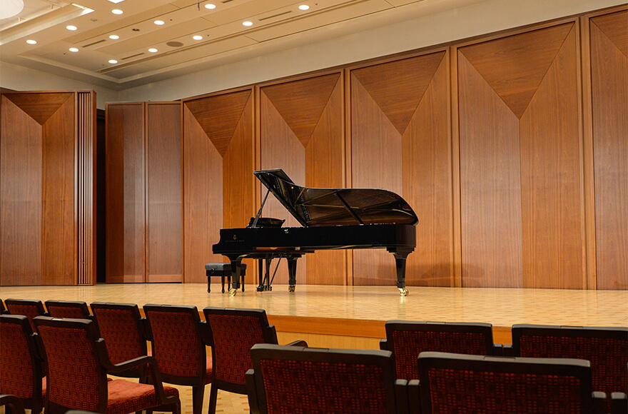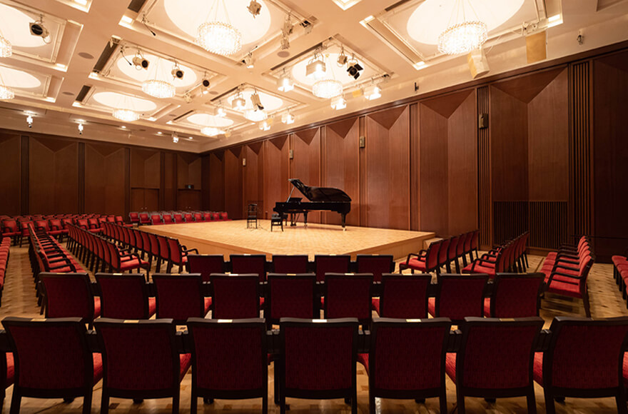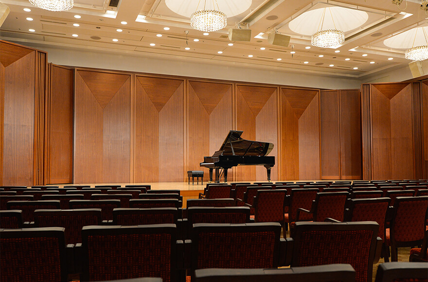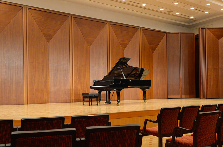 Plan A: 384 seats maximum / 24 seats x 16 rows Plan B: 432 seats maximum / 24 seats x 18 rows *All seats are removable, accessible for wheelchairs