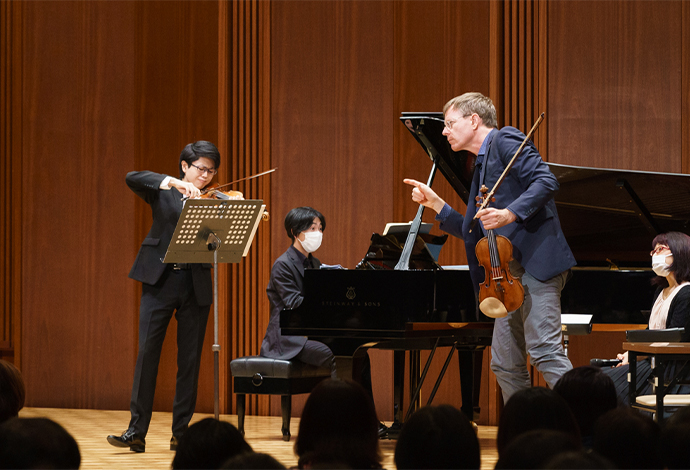 − Provides an opportunity to study with musicians who are active at the forefront of the chamber music scene in Japan and abroad and foster the joy and spirit of chamber music, thereby contributing to the development of young performers.