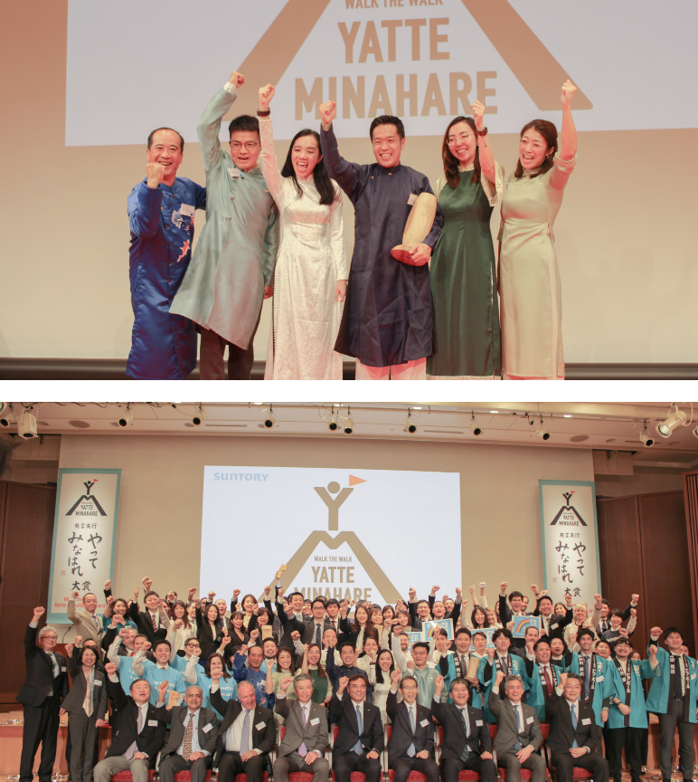 The annual “Yatte Minahare Awards” recognise Suntorians putting Yatte Minahare into practice and achieving their goals. It’s a great way to raise awareness and understanding of what it means to embody Yatte Minahare – which we believe is the key driver of growth for the Suntory Group.