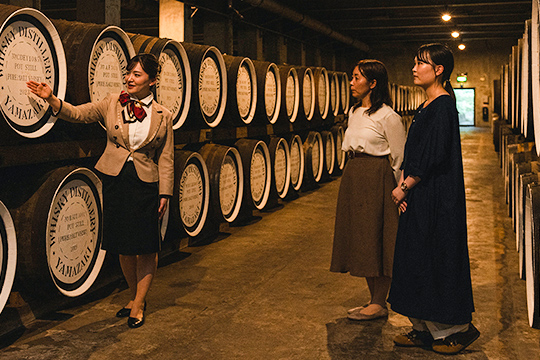 With staff guidance, visit the whisky production area and enjoy tasting of the Yamazaki component whiskies.