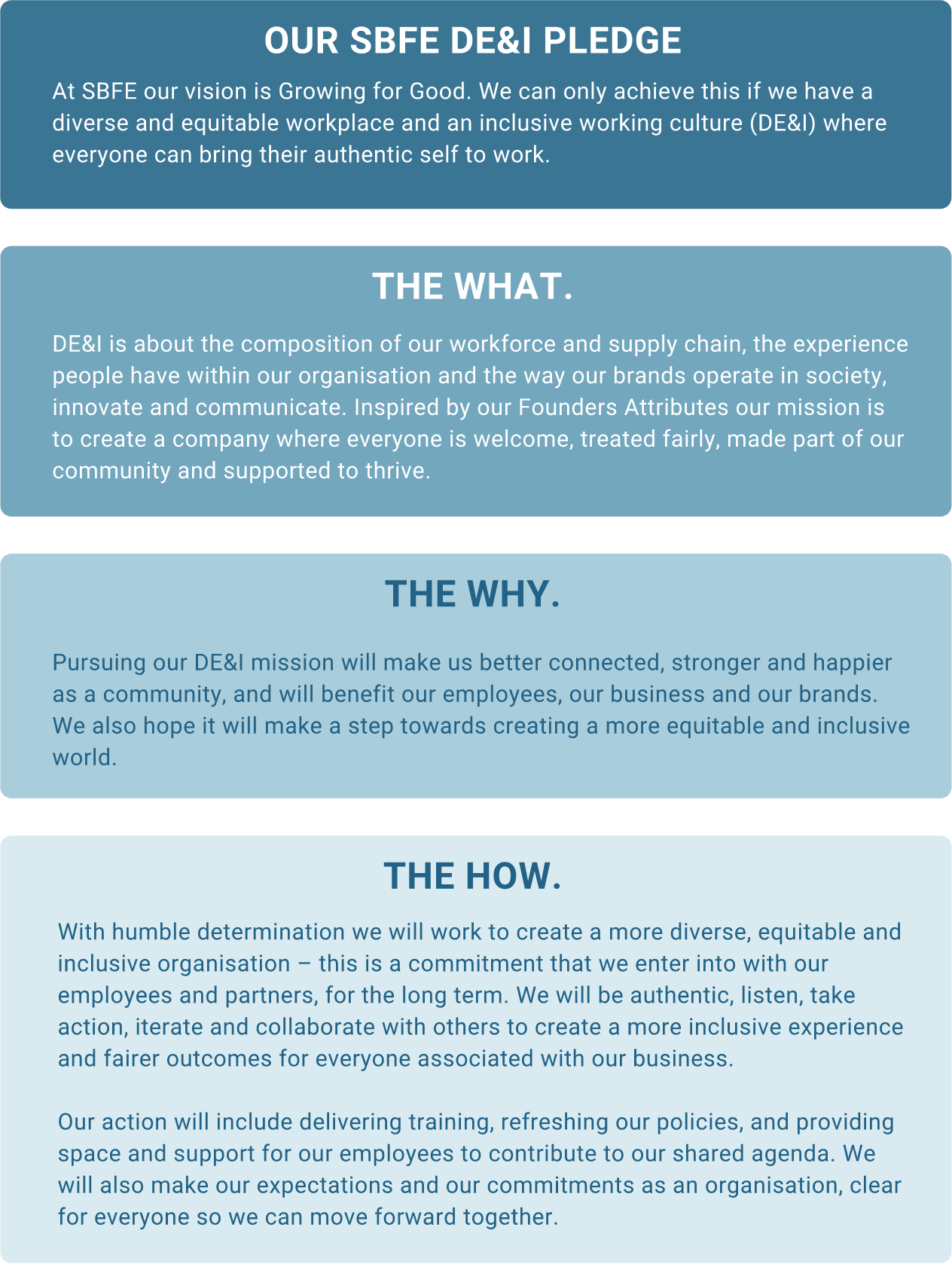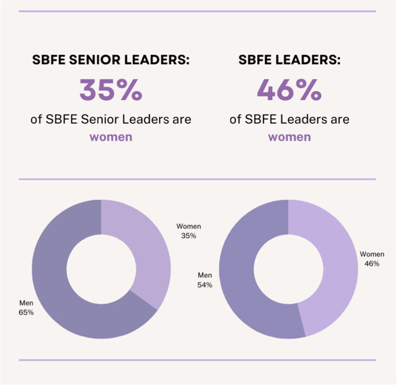 We know that having a diverse workforce and an equitable and inclusive working culture will make us better connected, stronger and happier as a community, and will benefit our employees, our business and our brands. We are proud that, currently, women make up 46% of the SBFE leadership positions and 35% of senior leadership positions.